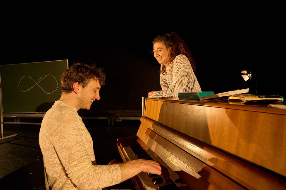 "Glimmer" von Till Doğan Ertener auf der leeren Bühne zu immer neuen Kapriolen. (…) Sie springen in immer wieder neue Storys und unterbrechen sich doch dabei ständig in ihrer Lust an der Neu-Erfindung ihrer selbst, die ihres Gegenübers und die ihrer Entwicklung. Das ist ganz große Kunst im Fabulieren, im Spiel ohne doppelten Boden, im sich Neuerfinden, im Laufenlassen der Fantasie, der großen Möglichkeiten, alles und jedes zu sein, hier auf der Bühne eines Theaters.“