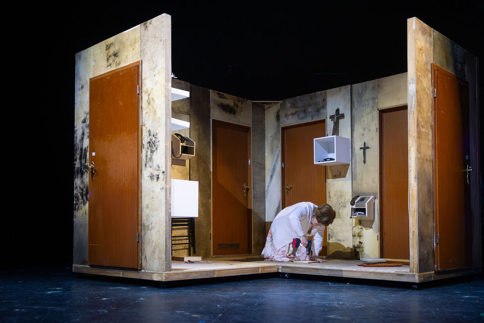 „Wie sich nun alle Vertreter:innen ihrer jeweiliges Buches zwischen den drei verschiebbaren Raumecken mit insgesamt sechs Türen die Show streitig machen, ist ein Hochgenuss der Theaterkunst.”
